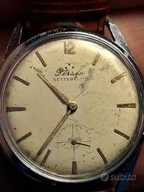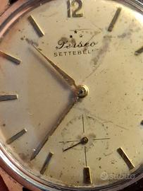 Bellissimo orologio meccanico a carica manuale marca Perseo Settebello con tre stelle, e perfettamente funzionante, non gli ho sostituito il suo sfondo macchiato perché in vecchiato per chi vuole lo rimette nuovo ma non originale come questo, macchina Svizzera, vetro ore 8 lievemente crepato, che dire compratelo e un affare. buon acquisto PREZZO RIBASSATO PER SOSTITUIRE VETRO