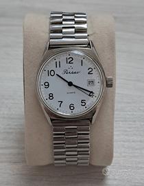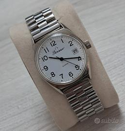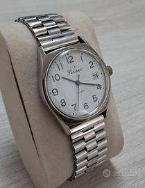 Modello: Perseo FS vintage Movimento: quarzo Dimensioni: circa 34mm Condizioni: buone condizioni generali, presenta lievi segni di usura e un graffio poco visibile, tutti i dettagli nelle foto. L'orologio funziona Cambio data rapido funzionante Cinturino neutro in acciaio