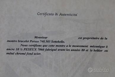 Orologio Perseo tre stelle "Settebello" referenza 740503, movimento meccanico, carica manuale, con documentazione, in perfetto stato estetico e di funzionamento.