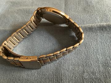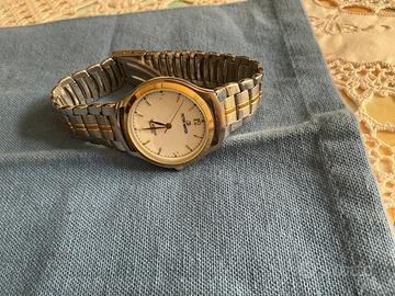 É un orologio al quarzo degli anni 80 ,appena uscito il quarzo ,è marca PETER ,ha sia la cassa che il cinturino bicolore è da uomo É fermo da tanto tempo ,penso che mettendo la pila si avvia É in vero acciaio ed é molto bello