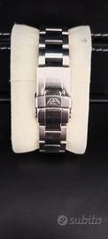 orologio in perfette condizioni(vedi foto) ,vetro in zaffiro,diametro 39 mm ,calibro svizzero Eta 2836 molto preciso ,resistenza all'acqua di 100mm ,corredato di scatola originale con card e maglie aggiuntive .
