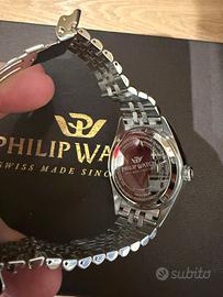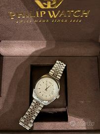 Vendo orologio come da titolo in ottime condizioni, usato pochissimo (presenza di piccoli segni dietro cassa e sulla fibbia chiusura quasi impercettibili), tenuto in maniera maniacale, molto elegante al polso, ref. R8223597009-31648 (anno 2021), collezione uomo, automatico swiss made, diametro cassa 38,8 mm, spessore cassa 11 mm, vetro zaffiro, quadrante bianco, bracciale in metallo, chiusura fibbia deployment con sicurezza a spinta laterale, con scatola in legno originale, prezzo listino sul sito Philip Watch 760?, non scambio, massima serietà garantita.