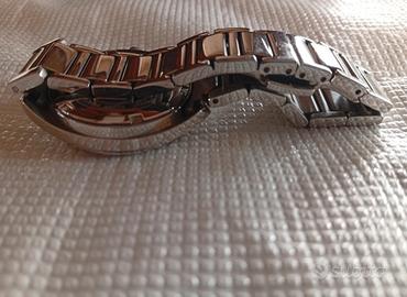 Referenza R8253493506 Water resistent 5 atm Cassa in acciaio inox, dim. 32 x 37.5 x 8.2 mm Bracciale in inox larghezza 20 mm, chiusura a farfalla con pulsanti di sblocco Movimento al quarzo svizzero Ronda 505 Quadrante grigio guillochécon 32 diamanti incastonati Datario a ore 3 Prezzo di listino 790 € Prezzo trattabile.