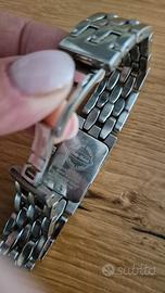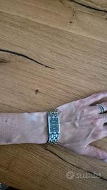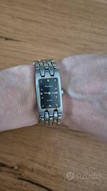 orologio da donna con quadrante rettangolare nero con zirconi. cinturino in acciaio.
