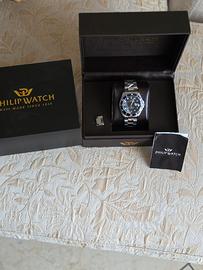 orologio Philip Watch come nuovo mai utilizzato ancora con tutte le sue pellicole originali segnalo per trasparenza un piccolo graffio sulla chiera che non si vede neanche a occhio nudo l'orologio è nuovo come si evince dalle foto con movimento al quarzo Swiss Made,vetro zaffiro, impermeabile 100 metri, corona serrata a vite, fondello serrato a vite, spedisco con la sua box originale.