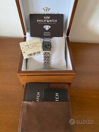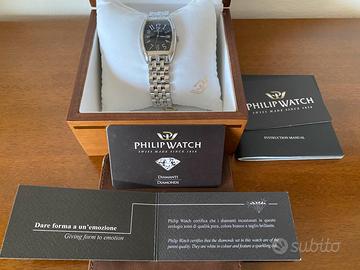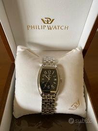 Orologio Philip Watch, Swiss Made, con autentici brillantini incassati in acciaio 316L, cassa tonneau, bracciale in acciaio 316L con chiusura deployante a farfalla, usato e in ottime condizioni.