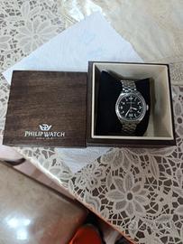 orologio Philip Watch Swiss made quarzo fuori misura tutto originale completo di scatola Philip Watch in legno perfettamente funzionante corona a vite lo cedo a solo 100 euro in più c'è la possibilità di spedizione con raccomandata 1 corriere GLS