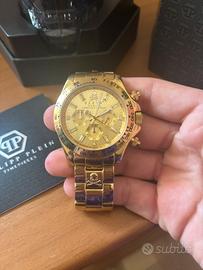 Orologio philipp plein oro praticamente nuovo in perfette condizioni,con altre maglie aggiunte scatola e tutto,lo scontrino ho solo quello regalo purtroppo, vendo per inutilizzo