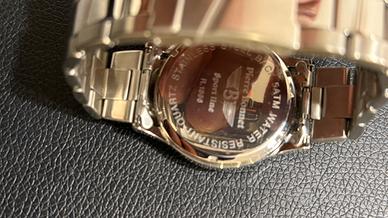 L'orologio è un cronografo del marchio italiano Pierre Bonnet, un'azienda fondata nel 1968 che propone collezioni dallo stile classico e contemporaneo. Dettagli del Modello Quadrante: Colore bianco con grandi numeri arabi luminescenti ad alta leggibilità. Funzioni: Cronografo con tre piccoli quadranti sussidiari e datario a ore 3. Resistenza: Il quadrante indica una resistenza all'acqua fino a 50 metri (5 ATM). Cassa e Cinturino: Interamente realizzati in acciaio inossidabile con bracciale a maglie. Orologio nuovo mai indossato, completo di box originale e tutte le maglie Batteria nuova