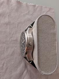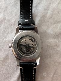 Hugo Junkers 150th Anniversary automatico, manifattura tedesca. Movimento automatico Miyota serie 821A. Diametro cassa 40mm spessore 12.5mm, lug to lug 48 e anse da 20mm. Orologio perfettamente funzionante e in ottime condizioni con solo qualche leggero segno di utilizzo (sul vetro minerale c'è un piccolo e leggero segno che si fatica a vedere ma c'è). Vendo solo orologio, no scatola, no documenti. Cinturino non originale ma in perfetto stato.