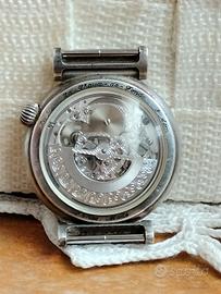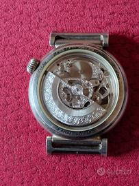 Vendo orologio automatico Pinko La Chaux de Fonds scheletrato, non ha il cinturino che era in pelle di alligatore. Il quadrante fronte e retro scheletrato e con i numeri arabi. Cassa rotonda in argento 925 con diametro da 37 mm e con copertura in vetro zaffiro. L'orologio è usato in ottime condizioni. per qualsiasi informazione non esitate a contattarmi. spedizione assicurata offerta.