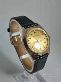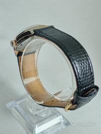 Un orologio che racconta una storia autentica: il Portento shockresistant a carica manuale di metà Novecento. La sua cassa dorata di forma, da poco piu di 32 mm di larghezza, richiama un tempo in cui eleganza e funzionalità convivevano in armonia. Il quadrante dorato con indici applicati e lancette a bastone è protetto dal suo vetro plexiglass originale, che conserva tutto il fascino dell’epoca. Al suo interno pulsa il movimento Parrenin 2641, che prende vita con la carica manuale: un gesto semplice e quotidiano che aggiunge valore all’esperienza di indossarlo. La corona a pressione e il fondello a vite riflettono la praticità di allora, mentre il cinturino vintage completa il quadro. Portento fu uno di quei marchi che nel dopoguerra portarono orologi affidabili a un pubblico più vasto, coniugando movimenti francesi e gusto italiano. Condizioni reali: - Orologio in buone condizioni con normali segni d’uso visibili in foto. - Movimento funzionante. - Corona a pressione e fondello a vite. - Guarnizione del fondello sostituita di recente. Un segnatempo dal fascino autentico, mantenuto in condizioni coerenti con i suoi anni e pronto a raccontare ancora la sua storia. Oggetto facente parte della mia raccolta privata. Non conosco la data della ultima revisione. La WR dichiarata dalla casa costruttrice, nei vintage, durante gli anni può aver subito variazioni quindi sempre meglio chiedere info in merito ed evitare di bagnare l'orologio volontariamente. Chiedi la misura del cinturino per essere sicuro ti vada bene. Se non diversamente indicato l'oggetto viene venduto senza scatola e libretti. Le foto sono parte integrante dell'annuncio. Non sono ammessi resi, solo se l'oggetto non corrisponde a quello venduto in foto. Chiedi sempre prima di acquistare, tuteliamoci entrambi. Vendita occasionale e non professionale. Non viene emessa fattura ai sensi dell’art. 67, comma 1, lettera i) del T.U.I.R. Cessione tra