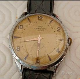 vendo orologio solo tempo princeps meccanico a carica manuale, diametro 36mm esclusa corona, ben funzionante, revisionato recentemente in data 04/03/2024. Cassa con leggeri segni del tempo