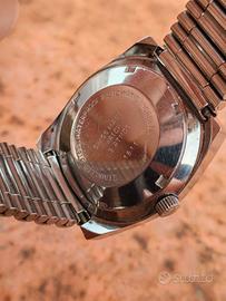 C’è qualcosa di autentico in questo Pryngeps Automatic mod. 1811: un equilibrio perfetto tra solidità e fascino retrò. Realizzato negli anni Settanta, quando l’orologeria italiana dialogava con la precisione svizzera, questo segnatempo incarna una bellezza sobria ma carismatica. La cassa in acciaio tipo Monnin, dal profilo robusto e scolpito, richiama il celebre Defy di Zenith: una forma iconica che unisce eleganza e forza. Sotto il quadrante argenté soleil batte il movimento automatico ETA 2783, 25 rubini – fluido, affidabile, di grande tradizione meccanica. Il quadrante cattura la luce con riflessi cangianti, e ogni dettaglio racconta una storia di gusto e precisione. Un orologio che non cerca di apparire: si lascia scoprire. Chi lo indossa, capisce subito che è un compagno sincero, figlio di un’epoca in cui il design aveva un’anima. Dettagli tecnici e condizioni reali: – Movimento automatico ETA 2783 – Cassa acciaio tipo Monnin da circa 37 mm – Fondello a vite, corona a pressione – Quadrante argenté soleil – Vetro acrilico sostituito da poco, in ottime condizioni – Bracciale acciaio vintage coevo – Guarnizione fondello nuova – Pulizia completa effettuata – Orologio in buone condizioni generali, con normali segni d’uso – Movimento funzionante --- Oggetto facente parte della mia raccolta privata. Non conosco la data della ultima revisione. La WR dichiarata dalla casa costruttrice, nei vintage, durante gli anni può aver subito variazioni quindi sempre meglio chiedere info in merito ed evitare di bagnare l'orologio volontariamente. Chiedi la misura del cinturino per essere sicuro ti vada bene. Se non diversamente indicato l'oggetto viene venduto senza scatola e libretti. Le foto sono parte integrante dell'annuncio. Non sono ammessi resi, solo se l'oggetto non corrisponde a quello venduto in foto. Chiedi sempre prima di acquistare, tuteliamoci entrambi. Vendita occasionale e non professionale.