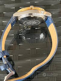 Orologio Pryngeps cronografo modello scaphandrier anni 90. Movimento automatico 7750. Diametro cassa 39mm esclusa corona. Quadrante blu, cassa acciaio , ghiera laminata. Buone condizioni generali, ben funzionante. Cinturino generico in pelle nuovo.