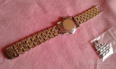 Vendo un orologio Pryngeps da donna con quadrante bianco e bracciale di metallo, con maglie disponibili per allargarlo.