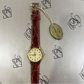 OROLOGIO PRYNGEPS CASSA ORO 18 KT. MM. 26 FONDELLO A PRESSIONE QUARZO VETRO ZAFFIRO CINTURINO COCCODRILLO MARRONE SWISS MADE 2 ANNI GARANZIA