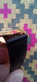 Movimento al quarzo originale made in svizzera (ETA) funzionante e compreso di batteria, cassa diametro escluso corona 35mm, adatta a ogni tipo di polso, con punzonatura della placcatura ma che non so identificare di quale tipo sia. Condizioni molto buone ( vedi foto), cinturino da 18mm in pelle nera usato, non originale. Particolare tappo a vite con catenella che protegge la corona, stile vintage elegante. Pagamento e spedizione tramite subito con poste italiane oppure InPost altrimenti consegna a mano qui a Erba.