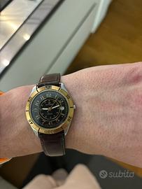 Materiali: La lunetta è color oro, mentre la cassa e il fondello in acciaio inossidabile. Il cinturino è in pelle.
