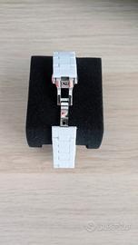 Questo orologio punta tutto sul fascino del minimalismo estremo e del design monocromatico. La cassa dalla caratteristica forma ottagonale si fonde perfettamente con il bracciale integrato, creando una linea continua e scultorea interamente declinata in un bianco opaco e puro. Il quadrante rinuncia a numeri e indici a contrasto, lasciando spazio solo a lancette bianche su fondo bianco per un effetto "tono su tono" incredibilmente moderno ed essenziale. Un accessorio leggero e versatile, ideale per chi cerca uno stile pulito, geometrico e decisamente fuori dagli schemi tradizionali. Senza confezione.