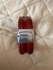 Cassa in acciaio e titanio , movimento Swiss Made , cinturino in gomma rossa Pirelli