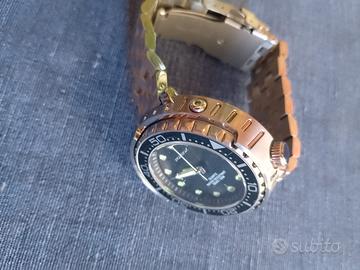 orologio in acciaio e in caucciù impermeabile e indistruttibile, corona girevole .ottimo per mare e per tutti i giorni.