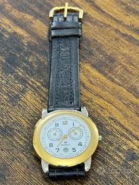 Orologio con movimento al quarzo di pregio e cassa in acciaio di mm. 35,0 al netto della corona di rimessa orario. Lunetta liscia lucida in acciaio, laminata. Fondello a scatto in acciaio inox. Segnatempo prodotto dalla famosa casa svizzera con quadrante bianco, numerazione araba ai bordi dello stesso riportante la marca tra i due contatori che in questo dial hanno funzione calendario e con data ad ore 6. Lancetta secondi al centro. Lancette a bastone sia per ore, minuti e secondi che per i contatori di giorno della settimana e mese. L‘orologio è un residuo di magazzino di orologeria chiusa. (NOS). Il cinturino è originale BREIL in pelle nera. Nonostante viene riportato sul fondello della cassa la dicitura WATER RESISTANT, sconsiglio l‘immersione in acqua. Orologio Nuovo senza cartellino ma MAI INDOSSATO. Batteria appena sostituita. Gli utenti interessarti, sono pregati di prendere visione delle fotografie dell‘oggetto in quanto sono parte integrante della descrizione. Fate domande se vi mancano informazioni. Date un occhiata anche alle altre mi inserzioni. Grazie per la vostra attenzione.