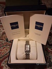 Orologio marca Raymond Weil- Geneva-modello Tango 2007 # 5471 Swiss made water resistant 5 ATM stainless steel Sapphire cristals con 8 brillantini sul quadrante,; nuovo mai usato, in scatola originale con documenti e certificato d’origine