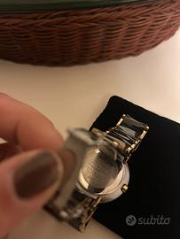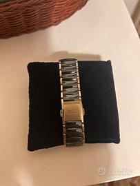 Orologio con pila bello lucido in maglie color antracite e rifiniture color oro e 4 punti luce. Valutata dall orefice 1500 Marca rado