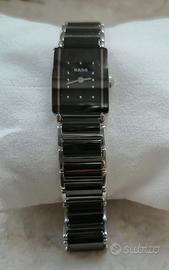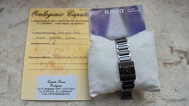 Orologio RADO con movimento al quarzo swiss made. Cassa e bracciale in ceramica high-tech. Vetro zaffiro. Chiusura di sicurezza in titanio ipoallergenico. REVISIONATO E FUNZIONANTE DETTAGLI DEL PRODOTTO Collezione: Integral cod. 153.0488.3 Alimentazione/Movimento: Al quarzo Tipo carica: Al quarzo Display: Analogico Impermeabilità: 03 ATM water resistant Materiale cassa in ceramica, colore cassa: Argento, colore quadrante: Nero Cinturino: Ceramica nera e argento dimensioni cassa (mm): 23*6