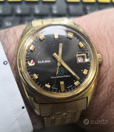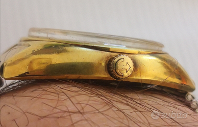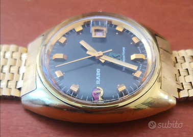 Automatico con data. Diametro cassa 35 mm senza corona. Cinturino originale Rado adatto a polsi di diametro fino a 17, 5 centimetri. Corona logata Rado. Placcato oro.