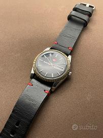 Vendo questo bellissimo Rado Voyager vintage con quadrante nero e ghiera in bronzo. Orologio in ottime condizioni. Movimento automatico su base Eta perfettamente funzionante e pulito. Datario in italiano e inglese. Tiene il tempo. Corona originale logata Cassa in acciaio di 36mm Per info contattami!