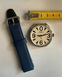 Orologio da polso Raketa modello Big Zero, di produzione sovietica. Movimento meccanico a carica manuale. Funzionante, senza cinturino originale.