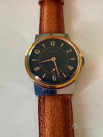 Orologio Raketa cinturino in pelle e quadrante blu scuro mai usato, corredato di scatola e documenti.