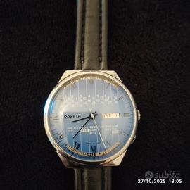 Propongo raro e bellissimo orologio Raketa manuale con calendario perpetuo. Quadrante azzurro, perfettamente funzionante, non perde un minuto. Molto ben conservato. Per collezionisti e veri appassionati del genere.