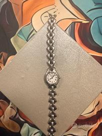 Elegante orologio da donna firmato Raymond Weil, modello Othello. Un pezzo vintage raffinato dal design senza tempo, perfetto per ogni occasione. • Stato: Oggetto usato ma in ottime condizioni generali, come visibile dalle foto. • Materiale: Interamente realizzato in acciaio inossidabile di alta qualità. • Vetro: Vetro zaffiro originale (estremamente resistente ai graffi). • Batteria: La pila è stata appena sostituita, quindi l'orologio è perfettamente funzionante e pronto all'uso. • Dettagli: Quadrante bianco con numeri romani neri e movimento al quarzo Swiss Made. Resistente all'acqua (3ATM). Un accessorio classico e di classe che non passa mai di moda.