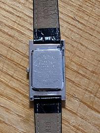 L'orologio mostrato nell'immagine sembra essere un modello vintage di Regina Schrecker. Si tratta di un accessorio da donna caratterizzato da una cassa rettangolare (stile "tank") e un quadrante dal design geometrico distintivo