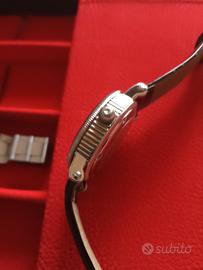 Orologio Rene Barton con movimento a carica automatica, molto bello, linea classica che richiama gli orologi marini d'epoca. Cassa in acciaio inox con lunetta zigrinata e corona a cipolla. Design "Open Heart" alle ore 6 è visibile il movimento del bilanciere che permette di osservare il battito interno. Nuovo mai indossato. Completo di scatola per regalo. Prezzo e modello per intenditori perché non più in produzione.