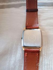 Originale orologio polso donna marca Revue Quartz Grandirille dalla cassa di forma rettangolare classica in oro 25x27 mm. Metallo dorato, quadrante dorato e lancette dorate. Revue Thommen è un'illustre casa produttrice di orologi svizzeri di alta qualità e precisione, le cui radici affondano nel lontano 1853. Orologio al quarzo con pila nuova.