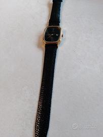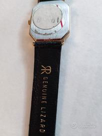 orologio unisex Revue, quadrante rettangolare nero, numeri romani con data,laminato,al quarzo, funzionante, cinturino originale in lucertola