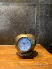 Orologio a forma di mela dorata fatto con zucca essiccata,intagliata e dipinta artigianalmente