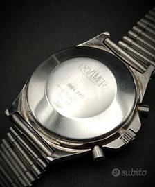 Vendo bellissimo orologio Roamer, originale in ogni sua parte , e ben funzionante,chronografo vintage con movimento automatico valjoux 7750. bellissimo quadrante nero opaco sub contatori ben leggibili, chono con conteggio dei secondi,minuti e ore (12). ghiera fissa tachimetrica, cassa acciaio di 39 mm e bracciale in acciaio originale. posso spedire con poste italiane o consegnare a mano in zona Como/Milano.non faccio tutto subito e non faccio scambi .