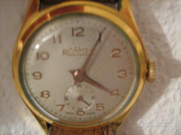 Orologio Roamer vintage ben funzionante primi anni 50, carica manuale, cassa acciaio, diametro 25mm, secondi ore sei, quadrante originale in bella patina, poco usato, adatto per signora o giovane ragazzo. Oggetto in buone condizioni, al limite può necessitare di una leggera pulizia. Ritiro a mano o spedizione gratuita
