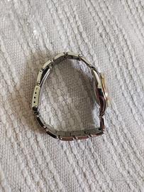Caratteristiche principali: 26 mm, tonalità oro champagne, acciaio inossidabile, quadrante rotondo, quadrante a bastone, lancette a bastone, finestrella della data ingrandita, lente Cyclope distintiva, corona a vite, bracciale Oyster Perpetual esclusivo, chiusura pieghevole, movimento automatico. Condizioni: ECCELLENTI. Questo articolo usato è in condizioni quasi perfette, senza segni di danni o usura.
