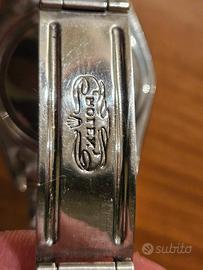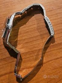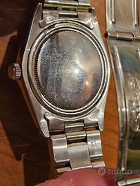 Rolex 6694 Precision Quadrante Nero ORIGINALE. Dalla marcatura della cassa risulta prodotto nel 1966. Carica manuale, diametro 34 mm senza corona, tiene perfettamente il tempo. Segni di usura su vetro (acrilico), cassa e bracciale compatibili con l'età. Non si garantisce la tenuta all'acqua. Rolex 6694 Precision black dial. The case number says it's a 1966 piece. Mamual wind, case diametre 34 mm not including the crown, it keeps time perfectly. Scratches and wear signs on glass (acrylic), case and bracelet compatible with its age. Waterproof not guaranteed.