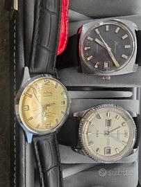 vendo da mia collezione numero 9 orologi di vari marchi carica manuale e automatici tutti funzionanti mancante solo sfera secondi Venus e vetro rotto Nitral .