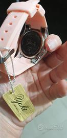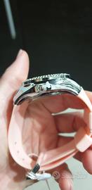 Orologio rosa da donna mai indossato con brillantini