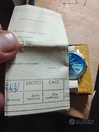 orologio anni 90 russo con la sua scatola e documenti mai usato e funzionante . misura grande (credo 38/39mm)