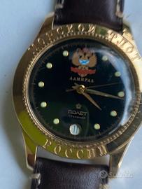 Orologio russo commerativo.. Movet( poljot) Mosca perfettamente funzionante.. con data e quadrante bellissimo Nero.. cassa da 38 mm senza corona .., 17 Rubini.. con bellissimo cinturino particolare … come nuovo.