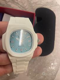 Vendo rarissimo orologio ruzza Tiffany , fuori produzione ormai da tempo , mai indossato e mai tirato fuori dalla scatola se non il giorno in cui ho fatto le foto, pellicole presenti completo di tutto, valuto offerte serie in pvt